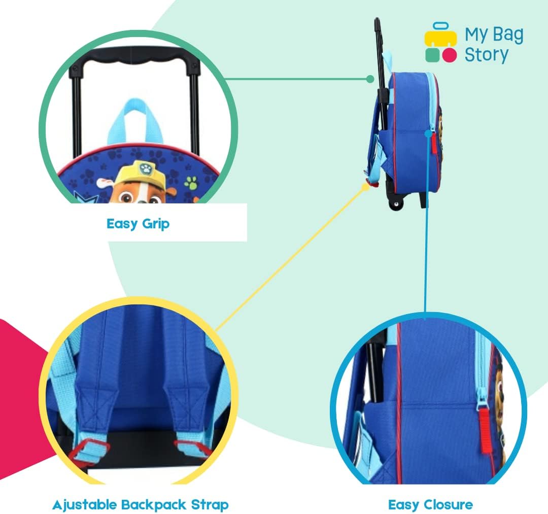 mybagstory – Trolley – Pat Patrol – Kind – Schule – Grundschule – Kindergarten – Tagesstätte – Kindergarten – Schultasche für Jungen – Größe 32 cm – Verstellbare Träger – Rollen