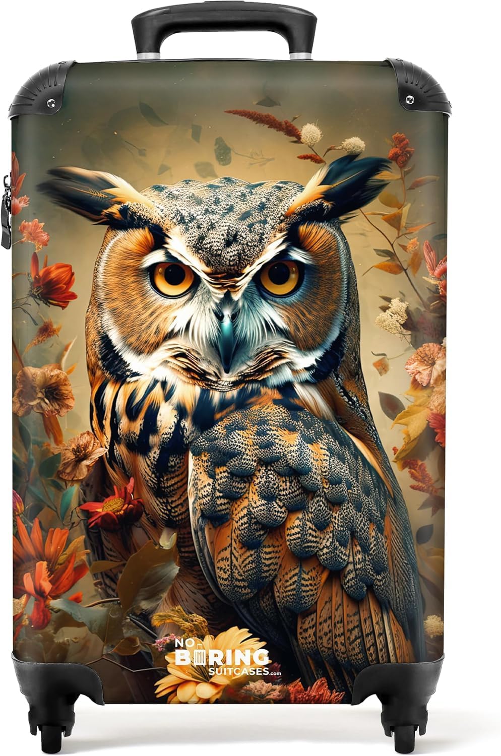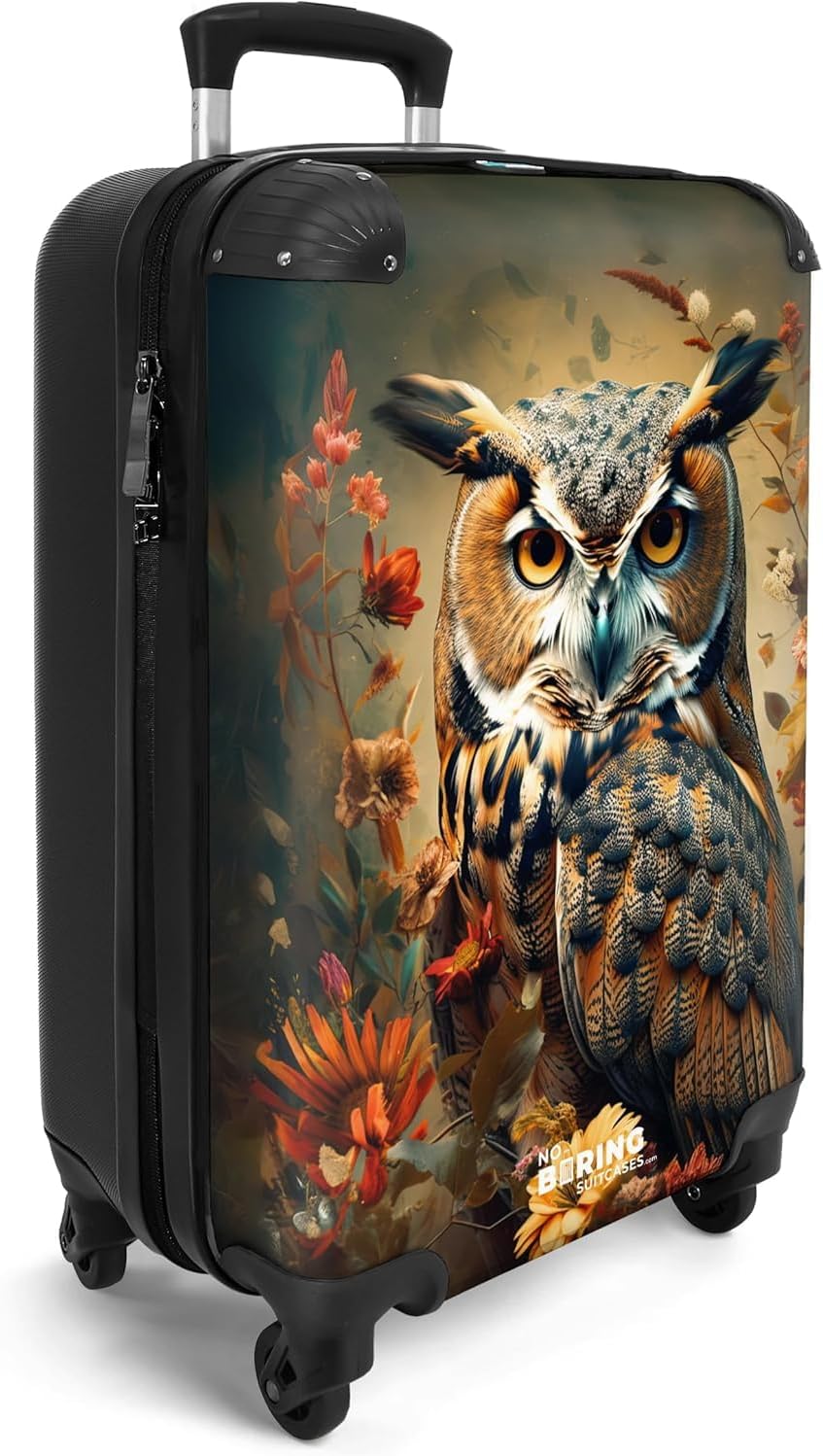NoBoringSuitcases.com® Handgepäckkoffer 55x35x20cm, 4 Rollen Kabinentrolley, Hartschale Eule