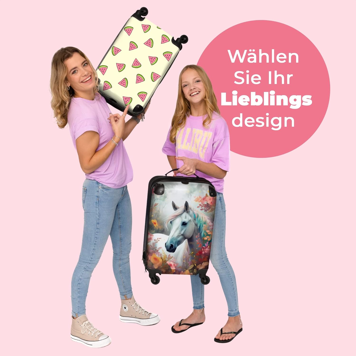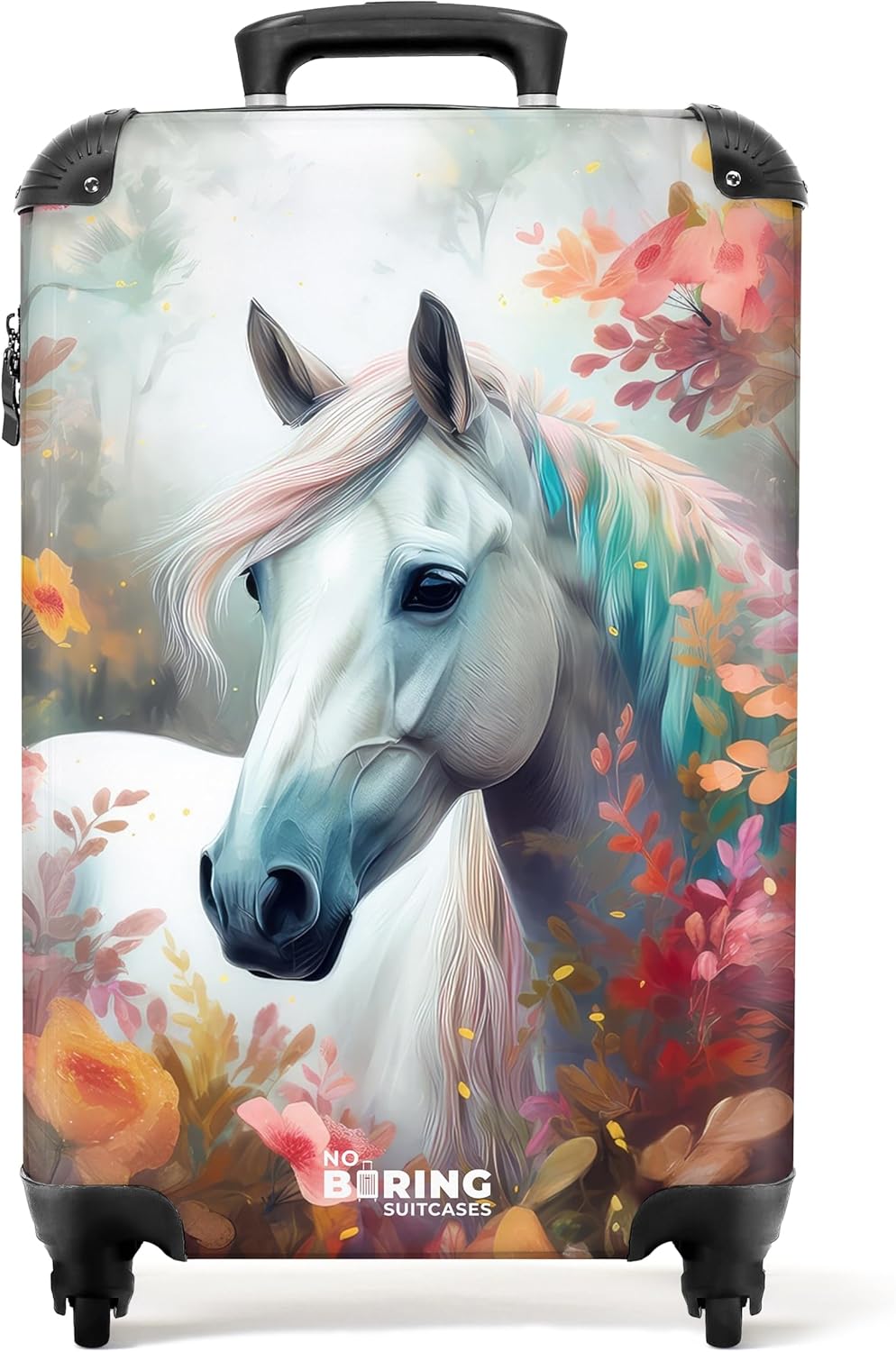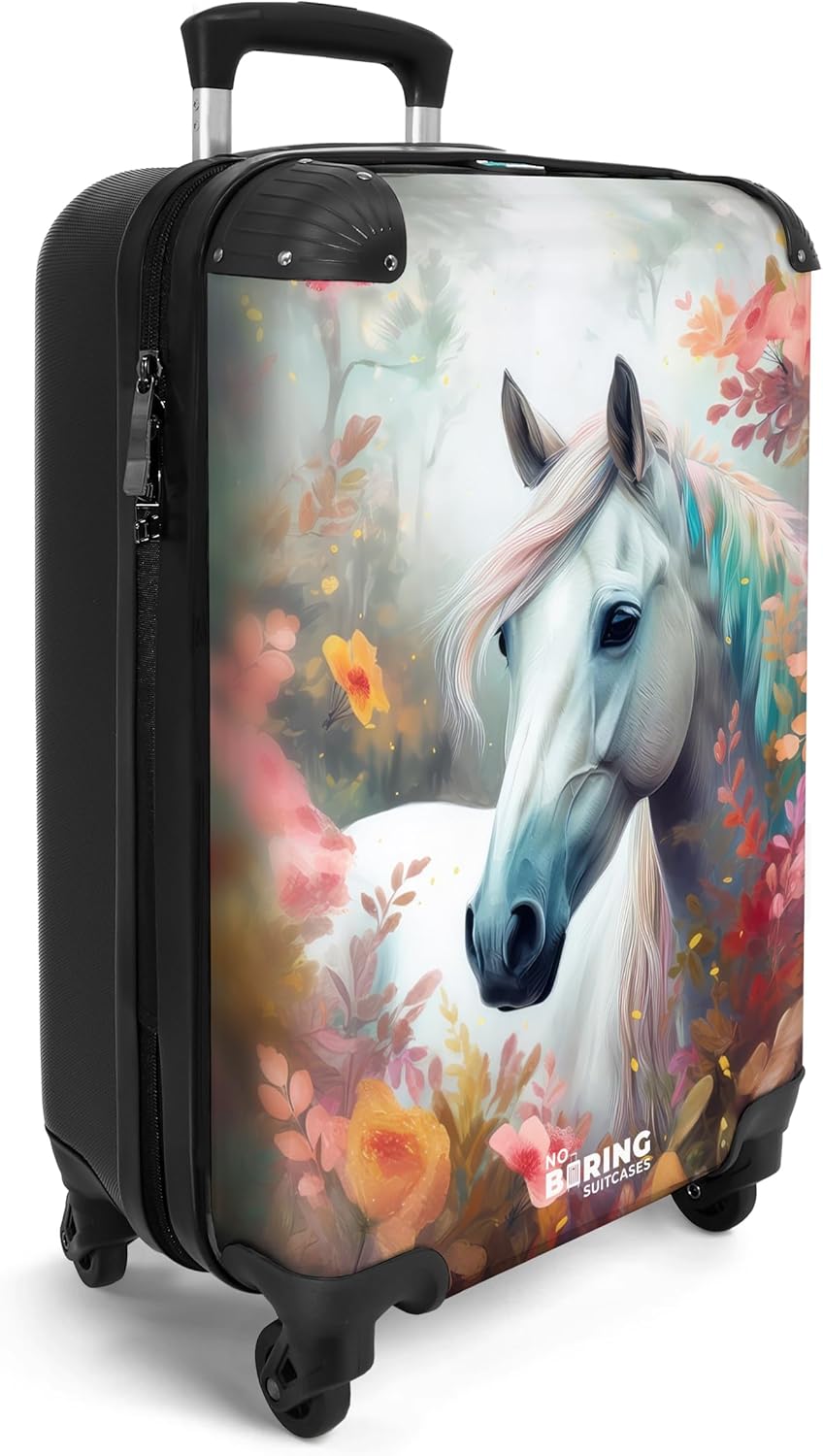 NoBoringSuitcases.com® Kinderkoffer Koffer Mädchen Trolley Handgepäck Hartschalenkoffer Klein Geschenk – Kinder – Pferde – Weiß – Kinder Koffer Madchen Koffer klein, 55x40x20
