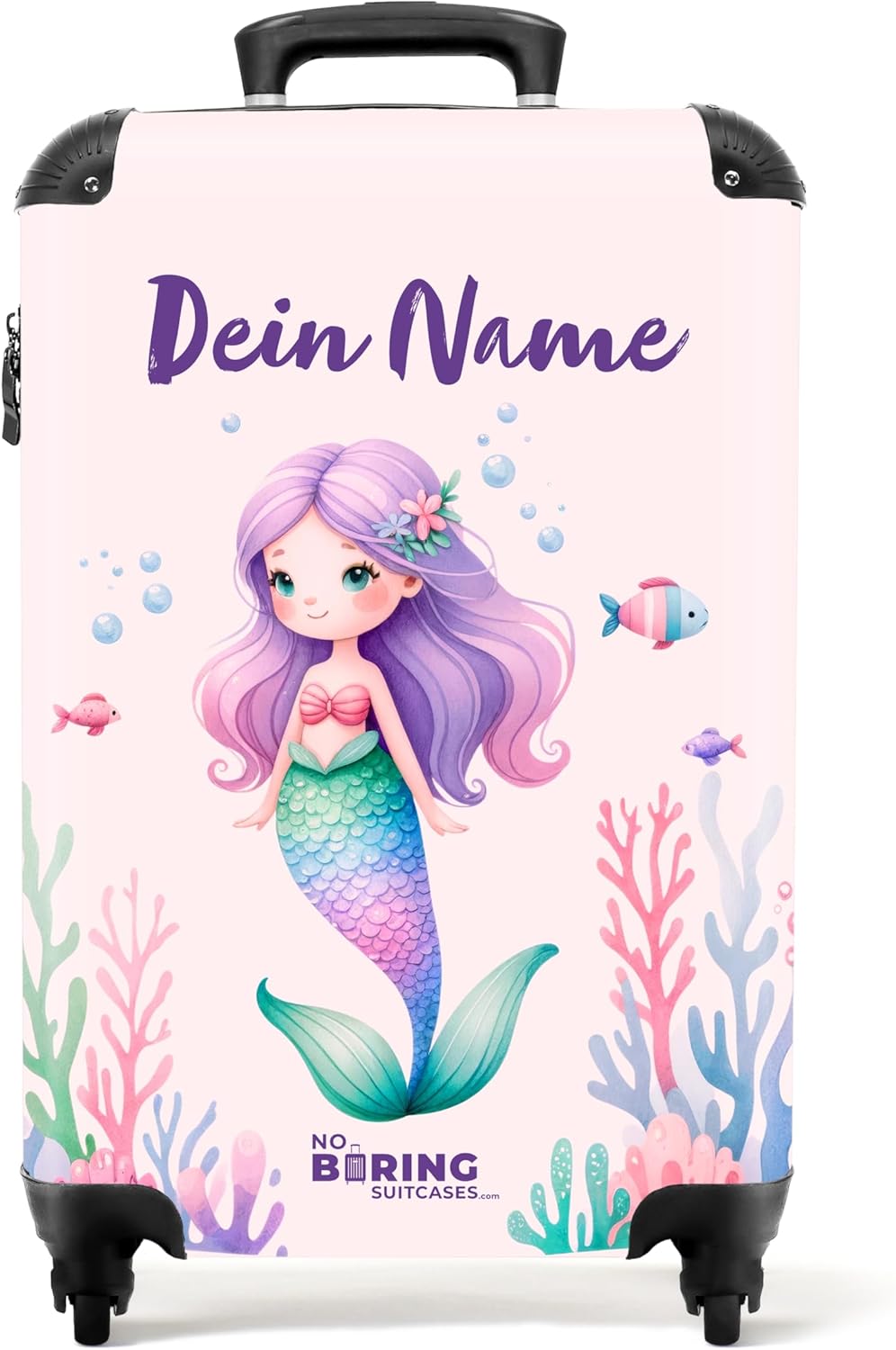 NoBoringSuitcases.com Kinderkoffer, Reisekoffer Personalisiert, Kinderkoffer Mädchen, Koffer Kinder, Reisekoffer, Koffer Pink, Kindertrolley Mädchen, Handgepäck 55x40x20 cm (Meerjungfrau – Rosa)