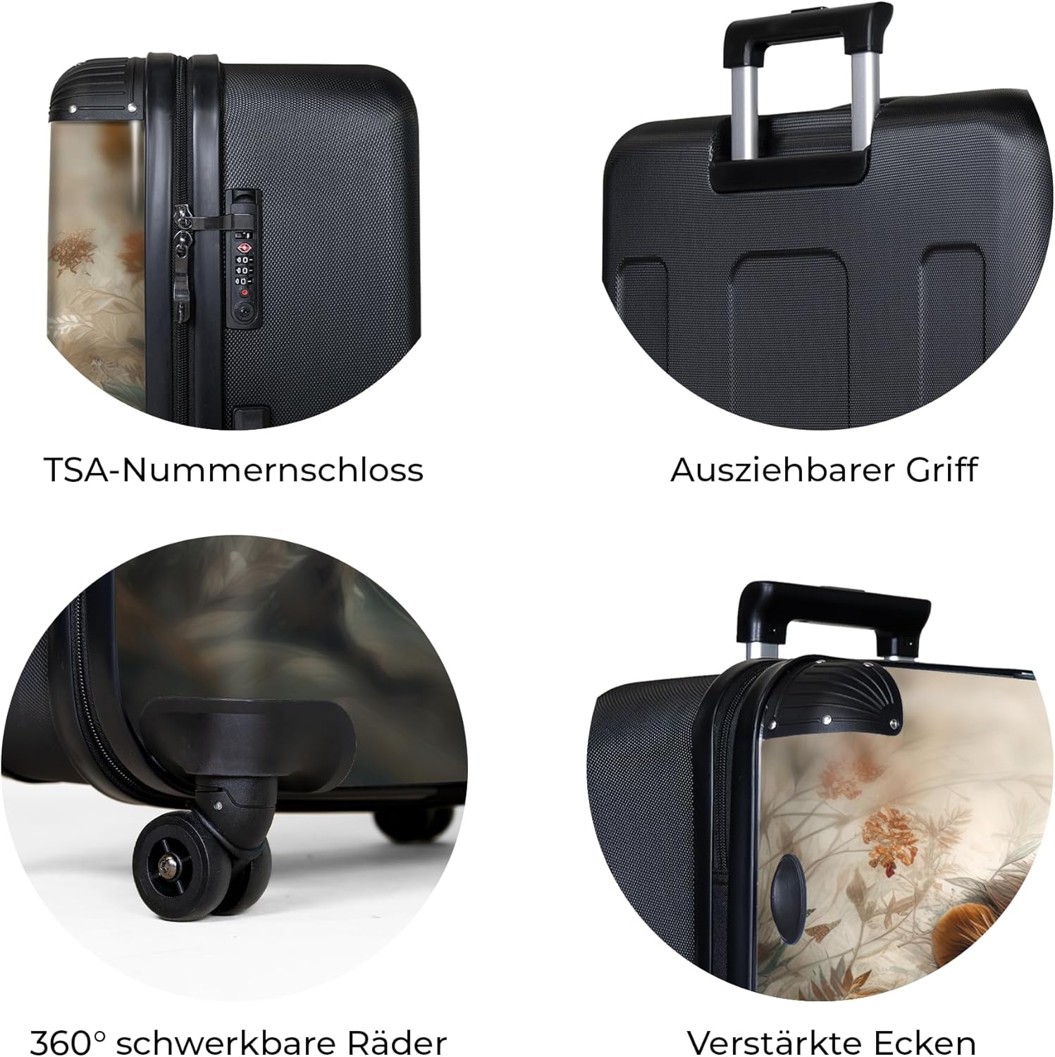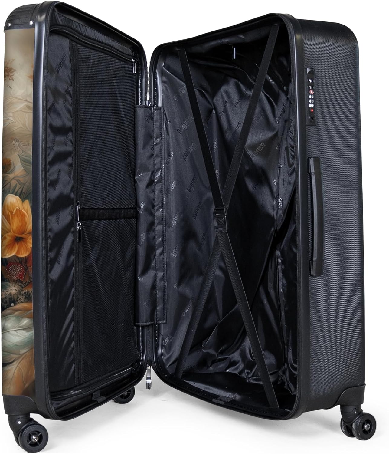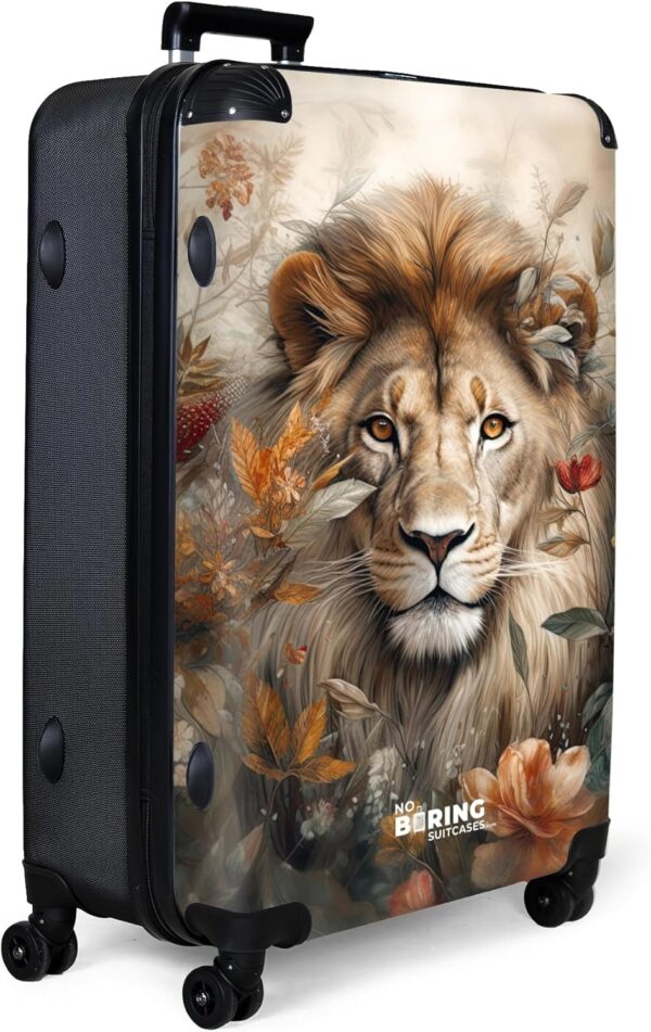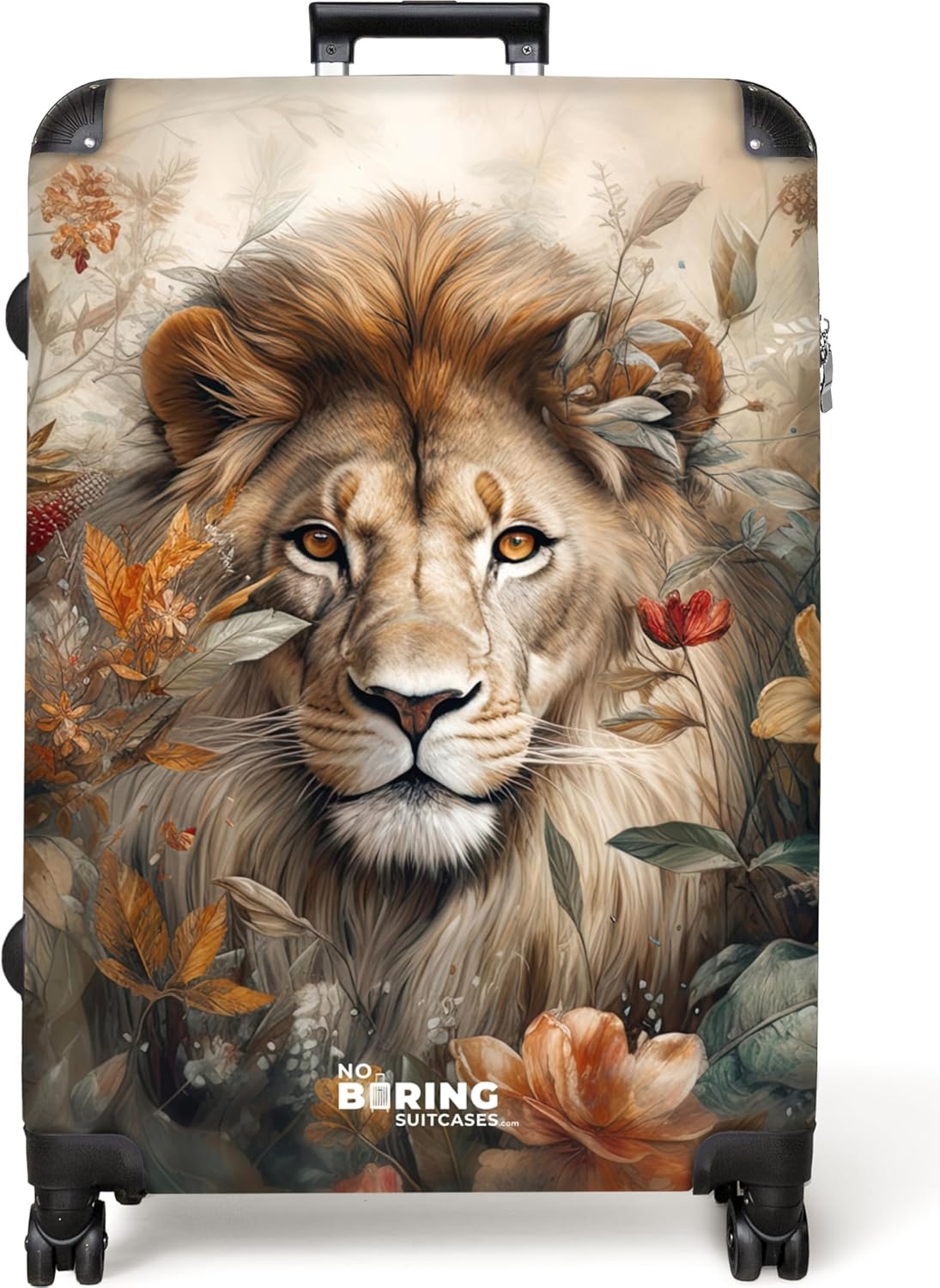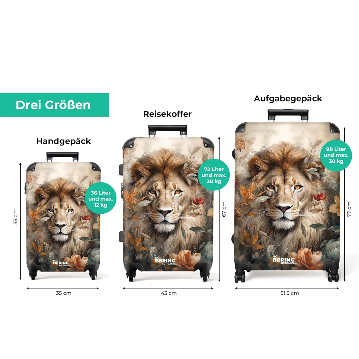 NoBoringSuitcases.com® Koffer XL Groß 77×51.5×28 cm Reisekoffer mit 4 Rollen Leicht Trolley Hartschalenkoffer Suitcase Large Löwe – Blumen – Braun