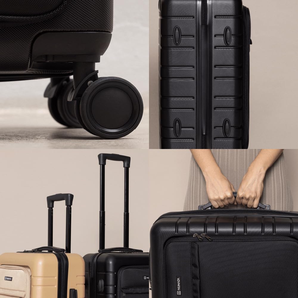 NUMADA – Handgepäck Koffer Trolley ABS PackPro T20 (56x37x22cm) mit TSA-Schloss und 4 Doppelrollen. Hartschalenkoffer mit Mehreren Innenfächern | Licht | Beständig