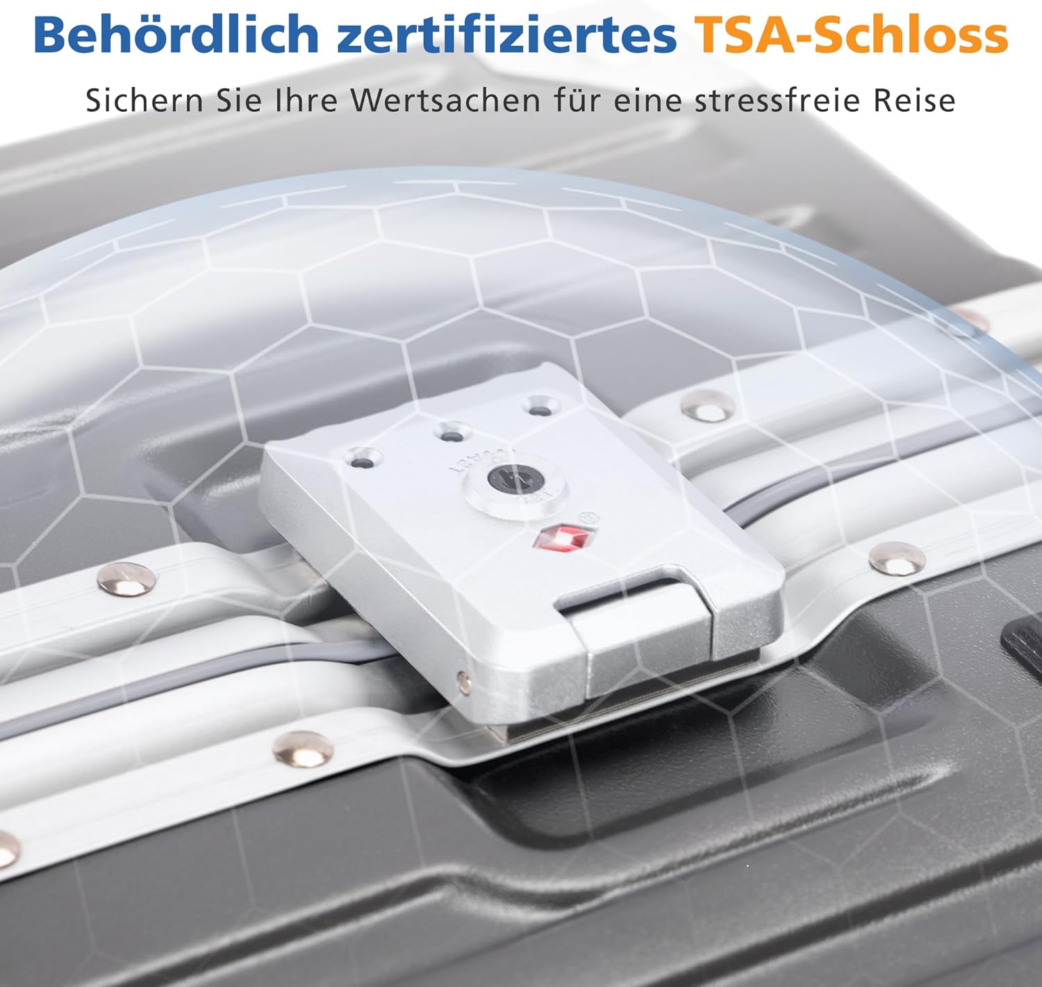Innovative TSA-Schloss-Technologie: Der Alphasac Koffer ist mit einem fortschrittlichen TSA-Schloss ausgestattet, das Ihre Wertsachen sicher schützt und gleichzeitig das Durchleuchten durch Zollbeamte erleichtert. Das Schloss verhindert, dass der Koffer gewaltsam geöffnet wird, und schützt ihn vor Beschädigungen während der Kontrolle. Zudem können Sie Ihren persönlichen Code einstellen, was die Sicherheit erhöht und Ihnen ein sorgenfreies Reiseerlebnis garantiert. Ideal für jedes Abenteuer