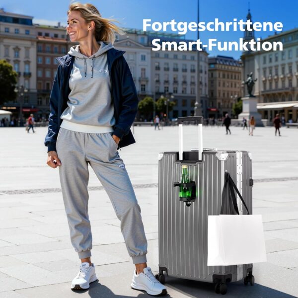 Der Handgepäck Koffer ist optisch ein keiner Hingucker. Da ich viel zu meiner Tochter ins Ausland reise, dachte ich, der ist perfekt für die Tage bei Ihr. Da ich zu 100% mit dem Flieger unterwegs bin, war die Mitnahme des Koffers im Handgepäck ein wichtiges Kriterium für mich.Voller Vorfreude nahm ich die erste augenscheinliche Begutachtung des Koffers vor. Die erste Inspektion war leider etwas ernüchternd. An den beiden im oberem Bereich innen angebrachten „Führungsblechen“ habe ich mir fast die Hand aufgerissen. So etwas darf nicht seinen! Die „Führungsbleche“ wurden ausgestanzt und unbehandelt eingebaut.Ich habe zum Glück die erforderlichen Werkzeuge im Haus und konnte die Kannten glätten.Die seitlich eingebauten „Führungsbleche“ waren geglättet. Das hat wohl ein Arbeiter etwas übersehen und eine Qualitätskontrolle hat scheinbar auch nichts gefunden. Nun ja, kann mal passieren – sollte aber nicht.TSA -Schlösser sind mindestens seit 15 Jahren Standard. Ich besitze schon lange keinen Koffer mehr ohne.Aus meiner Sicht, eine Selbstverständlichkeit. Diese funktionieren tadellos und die Einstellmöglichkeiten sind gut erklärt (Anleitung legt bei). Zu beachten ist hier, dass die Zahlenrädchen sehr leichtgängig sind und kein spürbares Einrasten bei Verstellung vorhanden ist.Auch fehlt mir ein Gurt auf der Taschenseite. Da wirbelt dann viel im innerem umher, wenn diese Seite nicht halbwegs voll gepackt ist.Die Ladefunktion aussen am Koffer ist für mich Nice to have. Im innerem ist ja „nur“ ein USB-A Stecker für die PowerBank vorhanden. Da nutzt auch der USB-C am Kofferausgang nichts. 5W Ladeleistung sind somit so gut wie vorprogrammiert.Auch benötigt man im Flugzeug sowieso noch eine andere Lademöglichkeit. Denn mit PowerBank im Koffer darf man im Flugzeug nicht Laden. Da heißt es dann PowerBank raus (am Gate) oder eine zweite in der Jacke mitnehmen und im Flugzeug am Platz nutzen.Zu den sehr guten Dingen gehören die beiden Haken am Koffer und die Leichtgängigkeit der Rollen. Bei meinem letzten Flug liess sich der Koffer mit ausgezogener Teleskopstange sogar besser seitlich Rollen als hinterher ziehen. Auch klappert oder wackelt die Teleskopstange bei meinem Koffer überhaupt nicht. Sie geht leichtgängig rein und raus.Den Getränkehalter habe ich schon benutzt. Super Idee. Man holt sich einen Kaffee oder ein Getränk am Flughafen und dank des Halters ist dieses dann sehr gut und sicher platziert. Nur sollte man nicht mit dem Getränk im Halter auf dem Flughafen umhergehen und den Getränkehalter auch so schnell wie möglich wieder einklappen. Sonst ist er bestimmt bei der nächsten Kofferbegegnung ab.Der Regenüberzug ist ein schönes Zubehör. Ob ich diesen allerdings nutzen werde, wird die Zukunft zur Dichtheit des Koffers zeigen.Fazit: Sieht man einmal davon ab, dass hier scharfkantige „Führungsbleche“ mit ungenügender Endbearbeitung verbaut wurden, ist dies ein optisch schöner und brauchbarer Handgepäck Koffer. Keine Prämiumqualität aber einfach, funktional und bisher sehr zuverlässig.