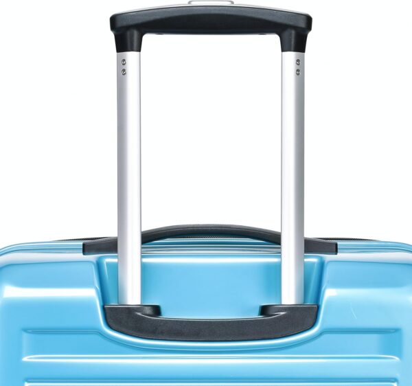 Mühelose Mobilität: 4 leise 360°-Doppelrollen für sanftes Rollen selbst bei voller Beladung. Verstärkter höhenverstellbarer Teleskopgriff aus Aluminium für komfortable Handhabung mittelgroßer Trolleys.
