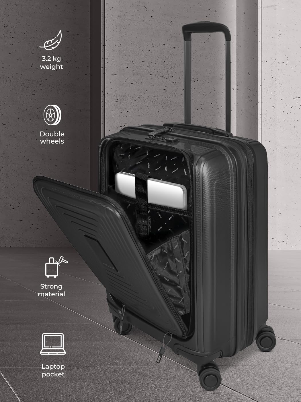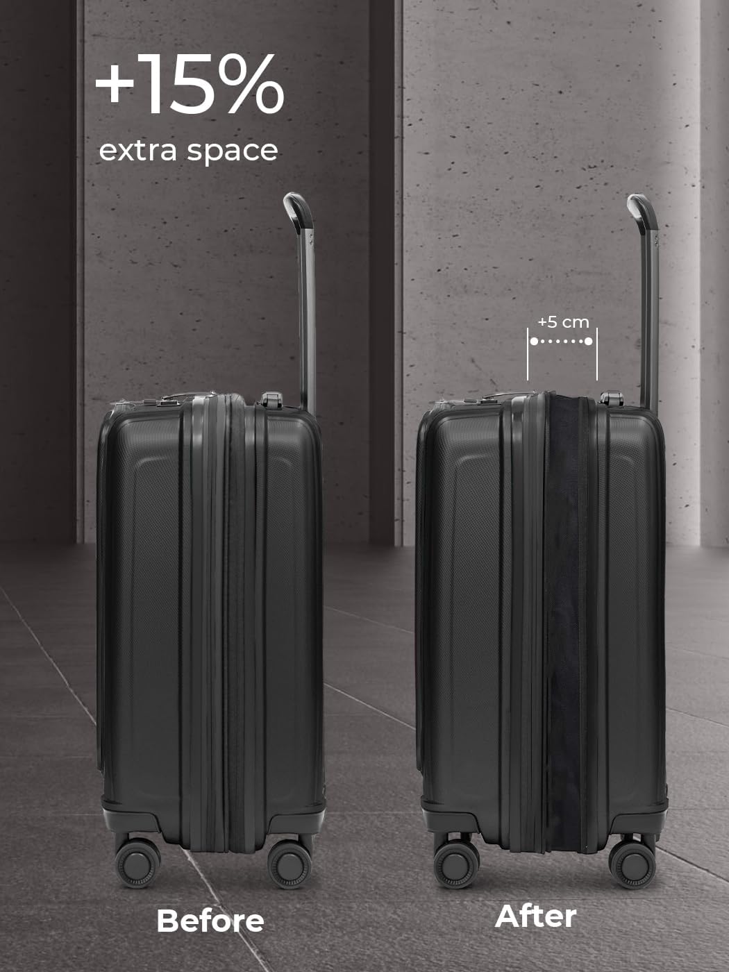 REDOLZ Handgepäck mit Laptopfach | Ultra-Leichter Koffer 40 x 23 x 55 cm & Frontöffnung | von 45 auf 55 Liter erweiterbar | nur 3,2 kg (Essentials 14)