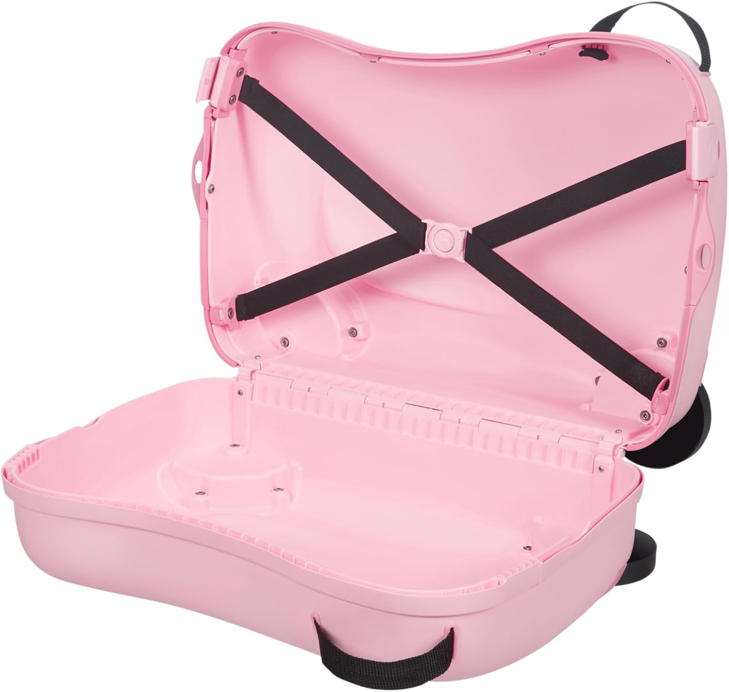 Samsonsite Dream rider Disney Kinder-Hartschalenkoffer verfügt über ein oberes Fach mit Packriemen, ein Bodenfach, einen Tragegriff an der Oberseite und einen abnehmbaren Schultergurt. Außerdem hat er einen Trolley mit vier Rädern.