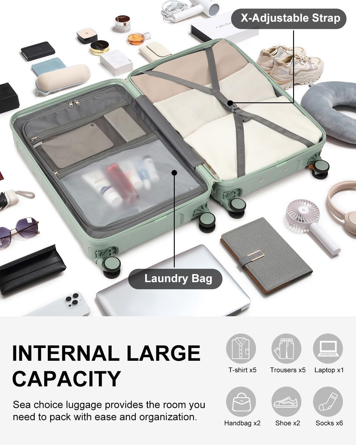 【100% ABS Hartes Schalenmaterial】 Leichte und strapazierfähige ABS-Hartschale; kratzfest, druckfest und wasserdicht; der vollständig gefütterte Innenraum und die mehrfach verwendbaren Organisationstaschen erleichtern das Packen von Kleidung.