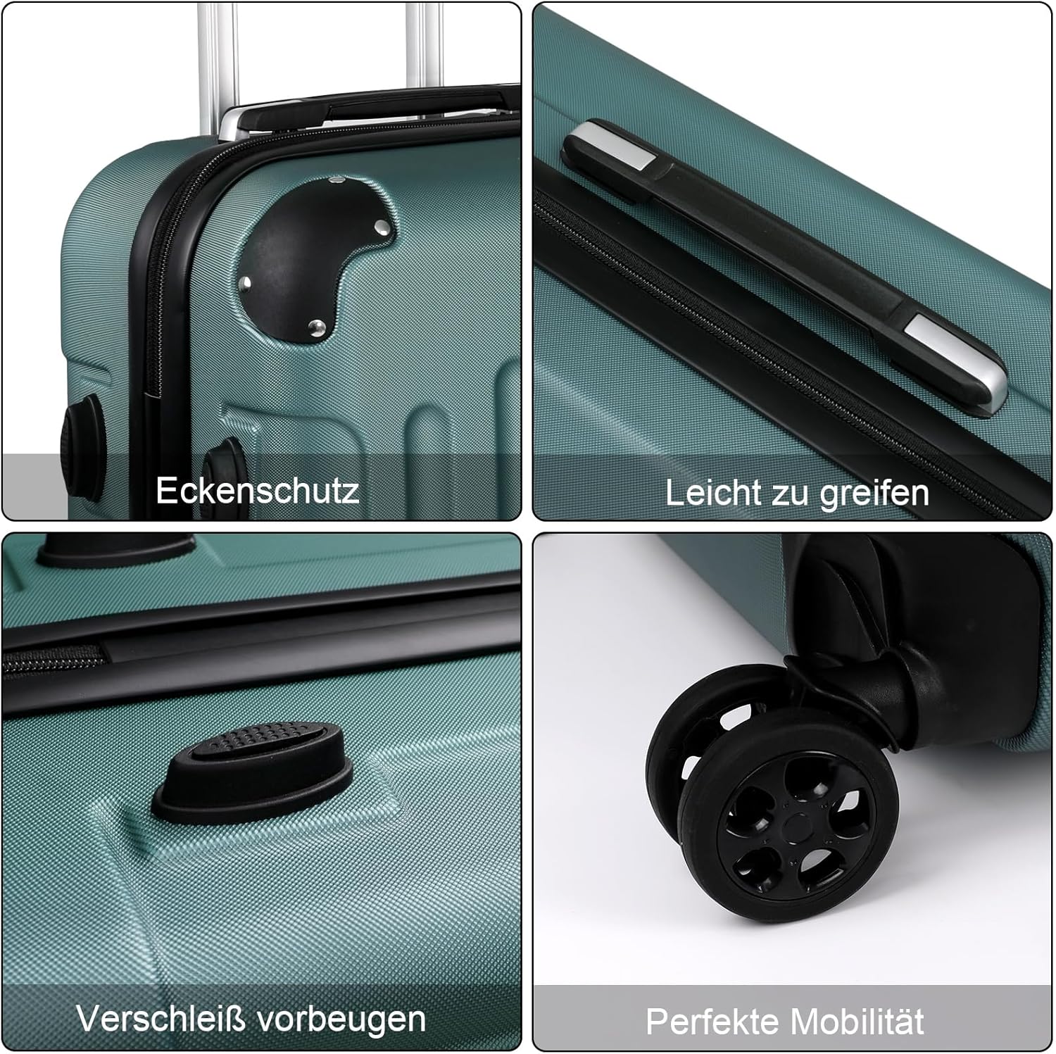[Premium-Material]: Reisekoffer Hergestellt aus ABS-Kunststoff, ziemlich leicht, ABS ist sehr stabil, jeder Koffer wird einer strengen Qualitätskontrolle unterzogen, wie z. B. Falllasttest, Griffzugtest, Radrolltest, Reißverschlusstest usw.