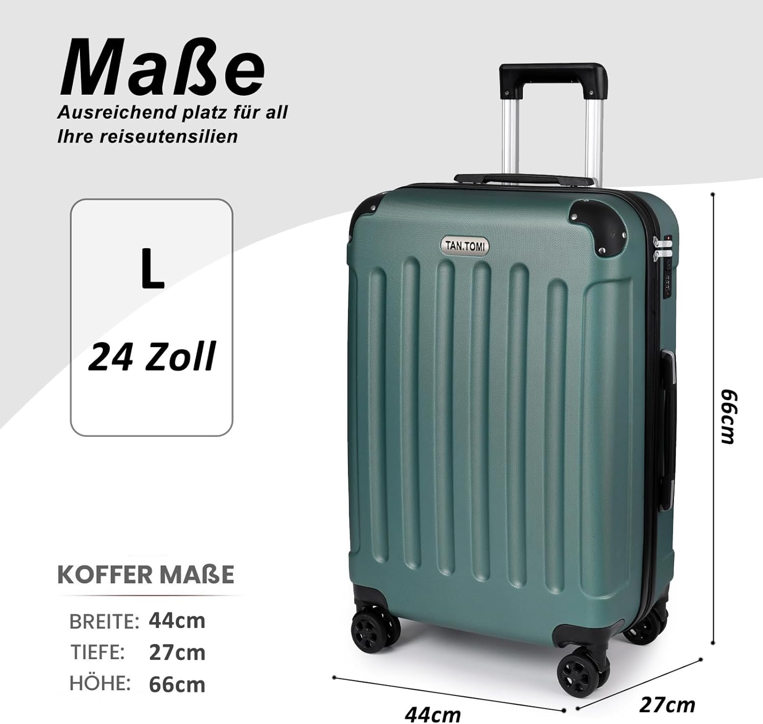 TAN.TOMI-Gepäck bietet die beste Lösung für Ihre Reisebedürfnisse. Jeder Stil hat ein anderes Design und ist in verschiedenen Farben erhältlich, sodass Sie unter den vielen Gepäckstücken schnell das gewünschte Gepäckstück finden. Jeder Koffer verfügt über ein geräumiges Hauptfach mit leichtgängigem 17-Wege-Reißverschluss zum einfachen Öffnen und Schließen. Eine stabile ABS-Schale, vier leichtgängige Rollen und ein höhenverstellbarer Teleskopgriff sorgen für einen einfachen und reibungslosen Transport. Zahlenschlösser sorgen für zusätzliche Sicherheit auf Ihrer Reise. Ob im Urlaub, Kurztrip, Geschäftsreise oder auf Reisen um die Welt, der TAN.TOMI Hartschalenkoffer ist immer Ihr zuverlässiger Begleiter.
