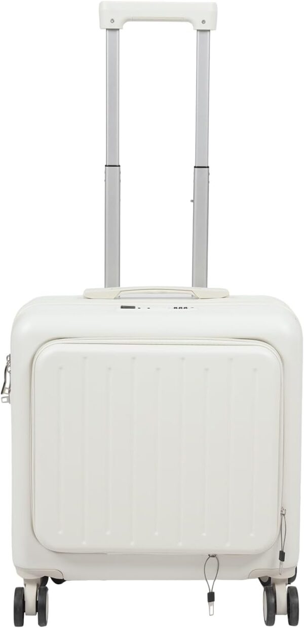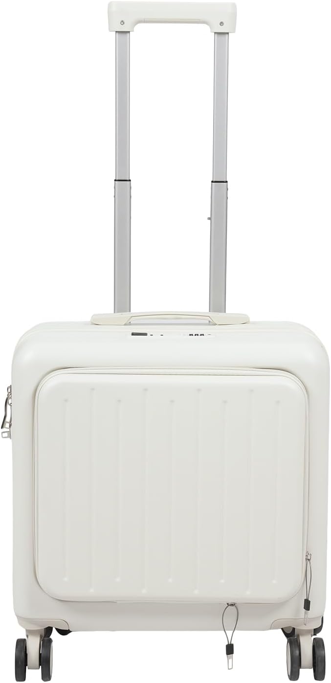 Travel Koffer, 18“ Leicht Hartschalenkoffer Trolley Reisekoffer mit 4 Rollen Fronttasche Getränkehalter Passwortschloss, Koffer Erweiterbar für Studenten, Geschäftsleute, Touristen, bis 30kg (Weiß)