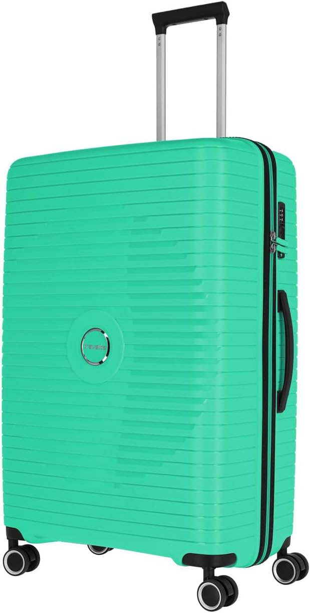 LIEFERUMFANG: 1 x Reisekoffer Größe L Maße: 77 x 51 x 30 cm; Volumen 103 Liter; Gewicht 3,5 kg; Material Polypropylen; Farbe Grün; mit integriertem TSA Zahlenschloss