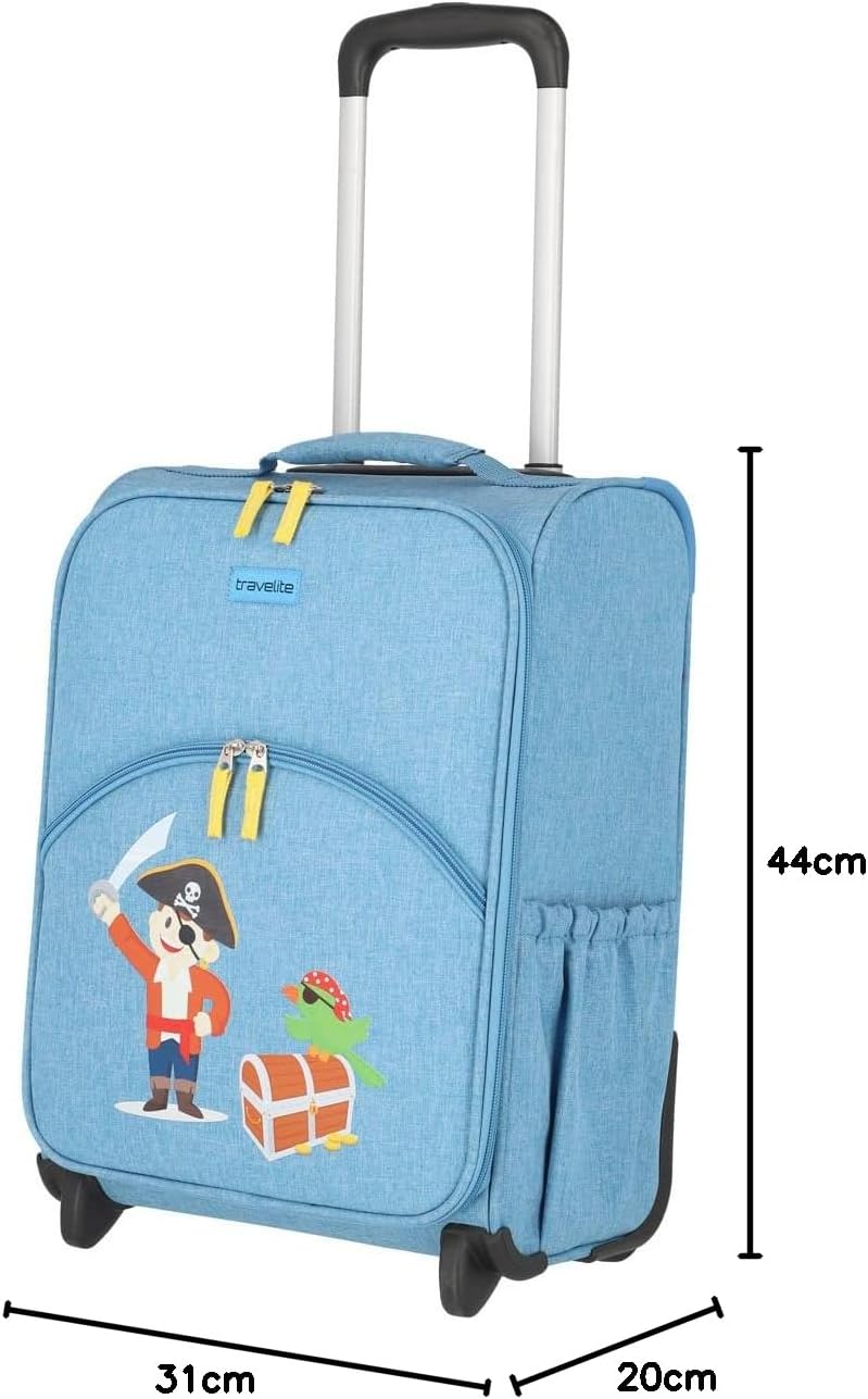 LIEFERUMFANG: 1 x Weichgepäck Kinder Reisekoffer Handgepäck Maße 44 x 31 x 18 cm (erfüllt IATA Norm Bordtrolleymaß); Volumen 20 Liter; Gewicht 1,9 kg; Motiv Pirat