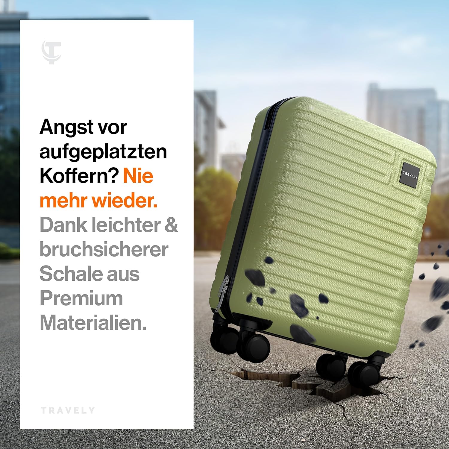 Ich habe den Travely Handgepäck Koffer gekauft und bin begeistert. Die GröÃe ist perfekt für die meisten Fluggesellschaften, und das leichte Design macht das Handling super einfach.Die Verarbeitung ist hochwertig, und die Materialien fühlen sich robust an. Besonders gefallen hat mir die Aufteilung im Inneren â es gibt ausreichend Fächer, um alles ordentlich zu verstauen. Zudem rollt der Koffer angenehm und leise.Insgesamt ein toller Begleiter für Kurztrips oder als zusätzliches Gepäck! Ich kann ihn nur empfehlen.