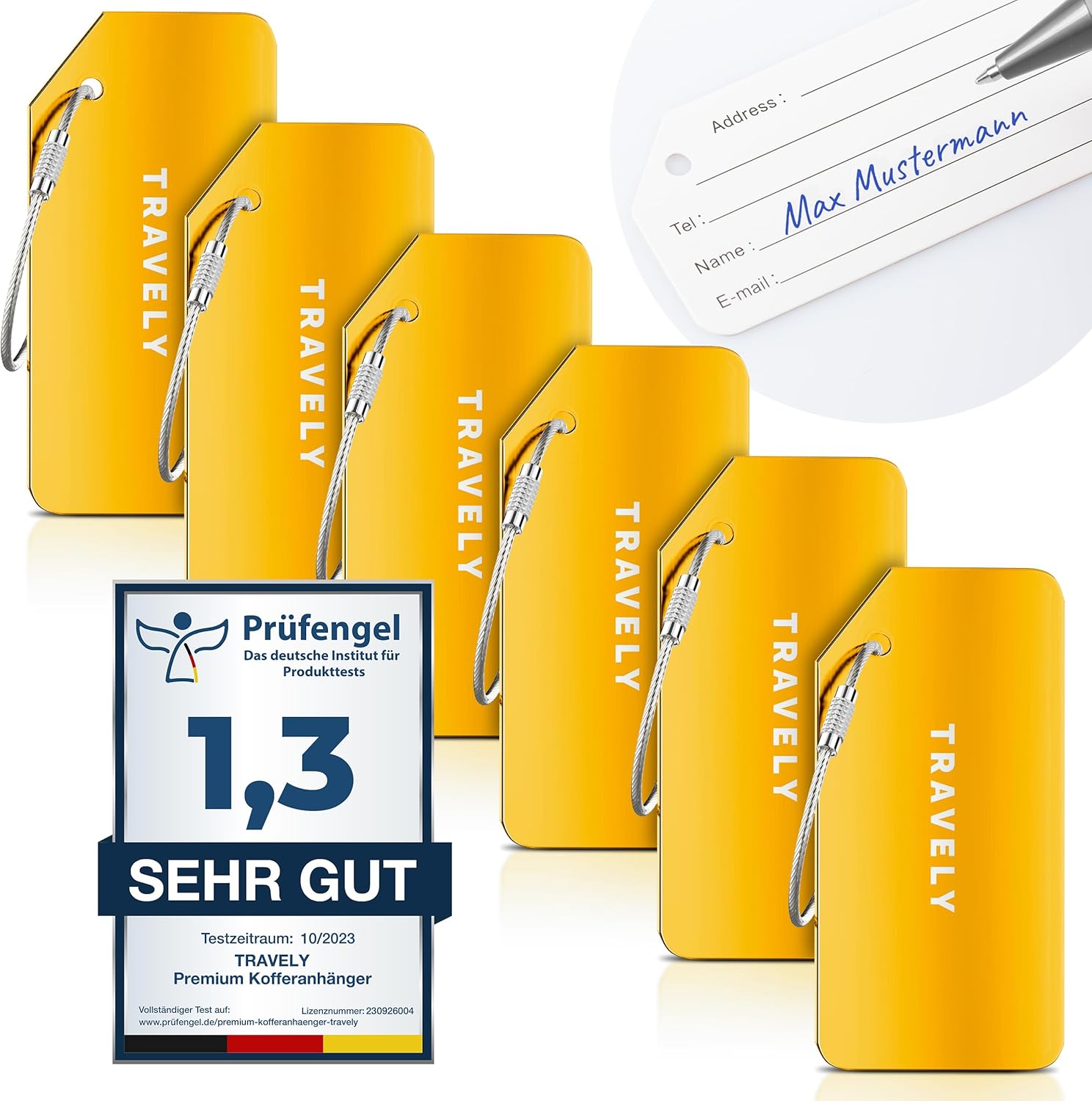 Travely Premium Kofferanhänger – leicht Erkennbar, Robust & Sicher – inkl. Namensschild und Privatsphäre Schutz I Vielseitig und Praktische Adressanhänger, Namensanhänger & Gepäckanhänger
