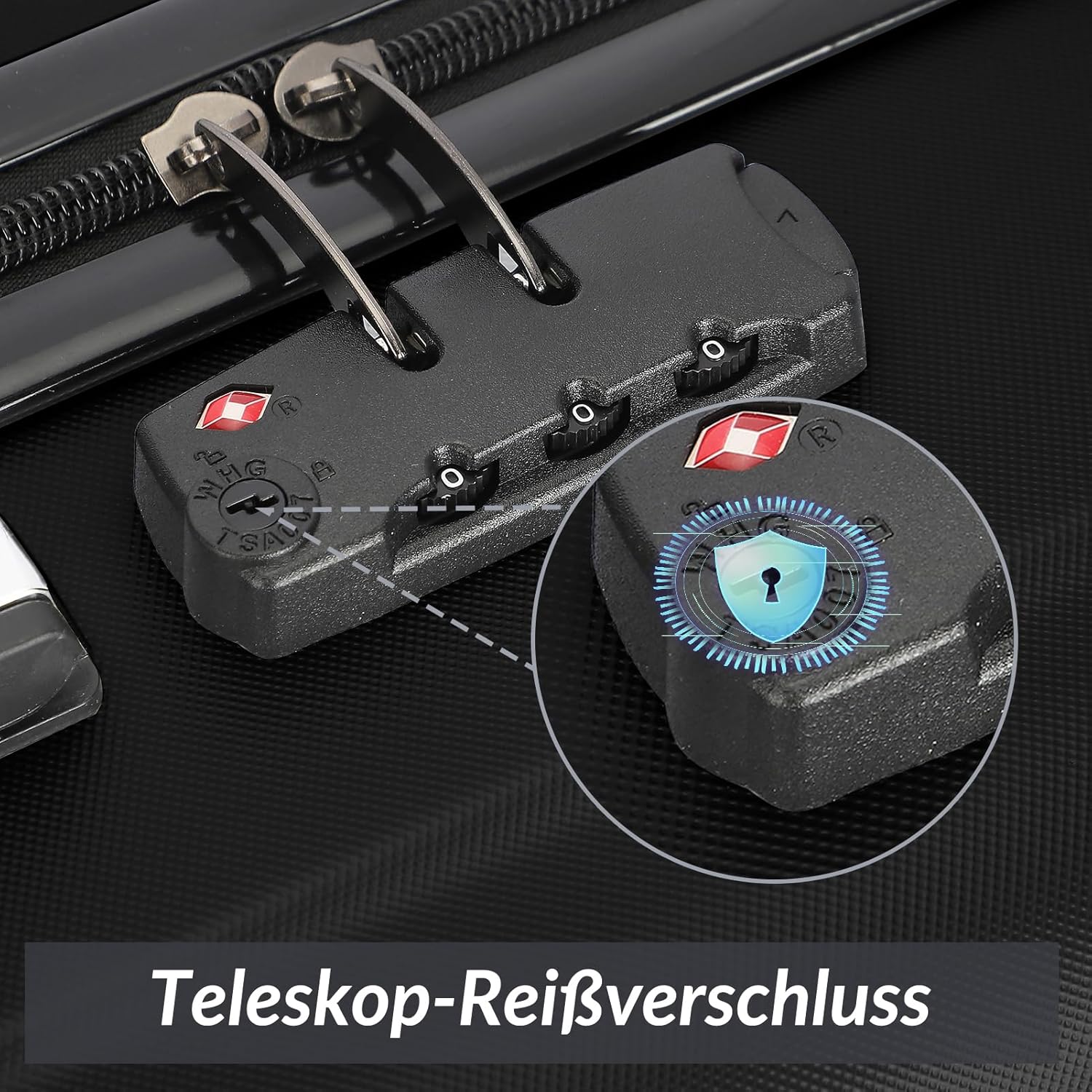 【Sicherheits-TSA-Zahlenschloss】Das Kofferset ist mit einem sicheren TSA-Zahlenschloss ausgestattet. Mit diesem Schloss können Sie Ihren Koffer während der Reise einfach und bequem abschließen und öffnen. Es entspricht den Sicherheitsstandards der Internationalen Luftverkehrsvereinigung (TSA) und schützt Ihren Hartschalenkoffer vor unbefugtem Zugriff. So können Schäden minimiert werden, die bei Sicherheitskontrollen entstehen können.