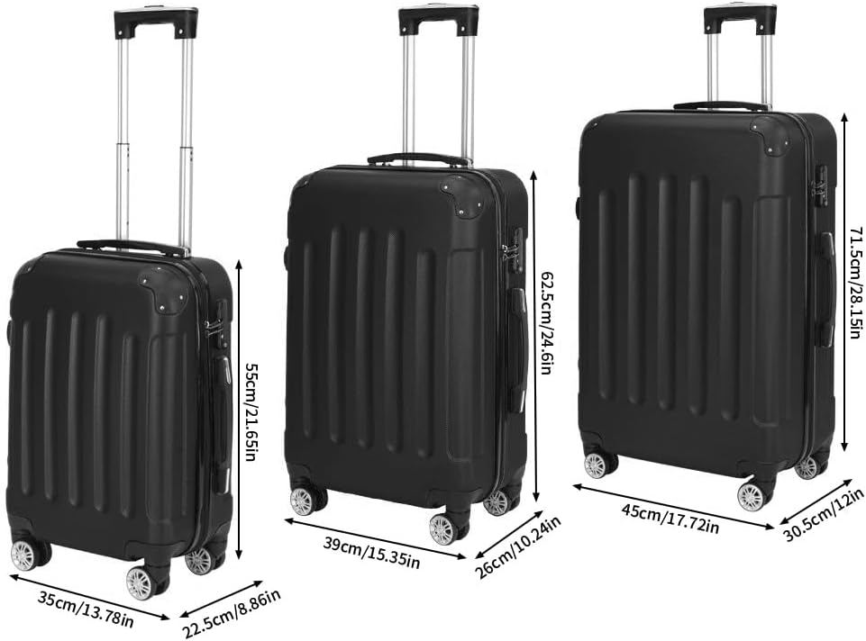 【Vielfältige Größenoptionen】Das Kofferset bietet verschiedene Größenoptionen, um unterschiedliche Reisebedürfnisse zu erfüllen. Der kleine Koffer misst 35×22.5x55cm/13.78×8.86×21.65in, der mittelgroße Koffer misst 39x26x62.5cm/15.35×10.24×24.6in und der große Reisekoffer misst 45×30.5×71.5cm/17.72x12x28.15in. Je nach Reisedauer und Menge des mitzuführenden Gepäcks können Sie die passende Größe wählen.