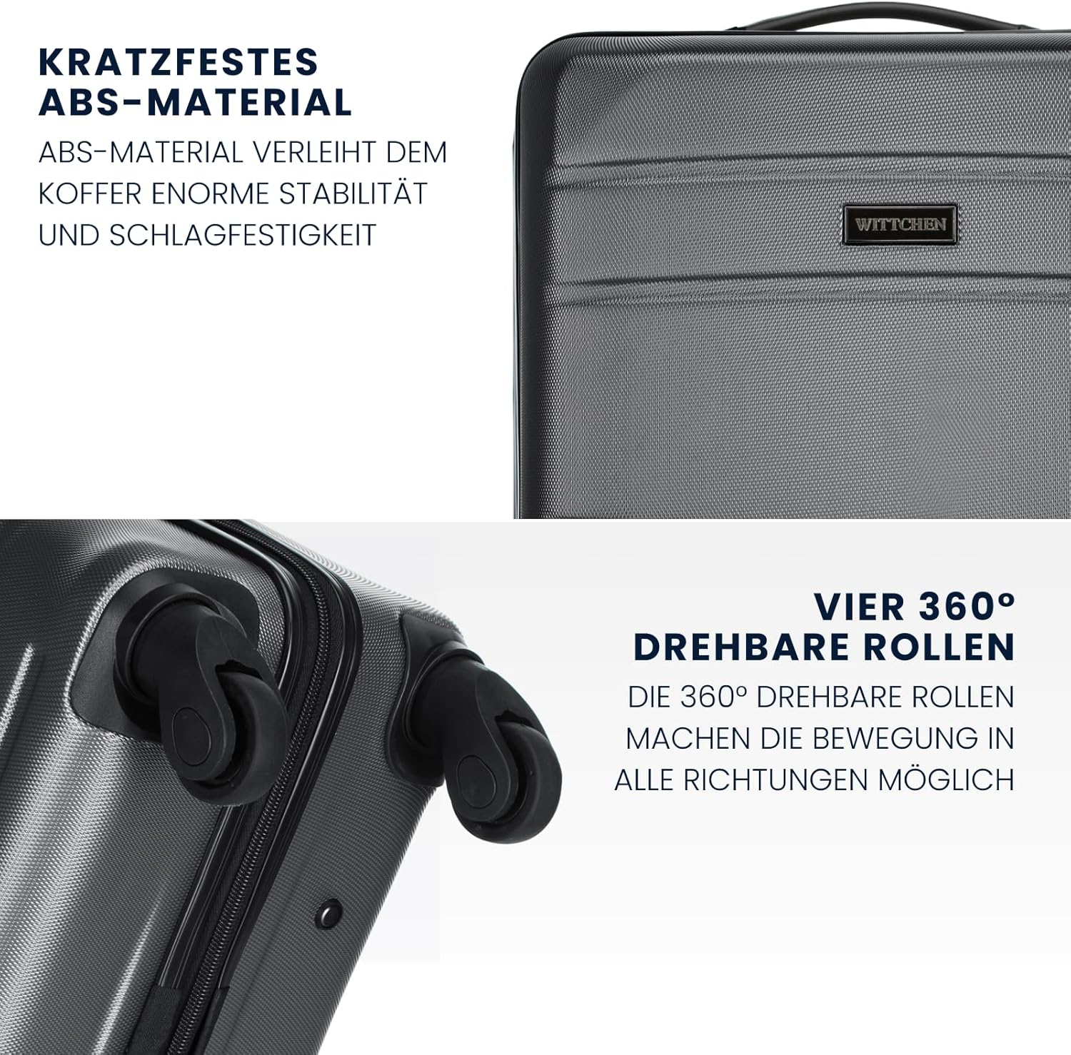 Komfort der Nutzung: Die 360-Grad-Drehrollen ermöglichen ein einfaches und reibungsloses Manövrieren des Koffers in jede Richtung und erleichtern das Bewegen an überfüllten Orten wie Flughäfen und Bahnhöfen erheblich