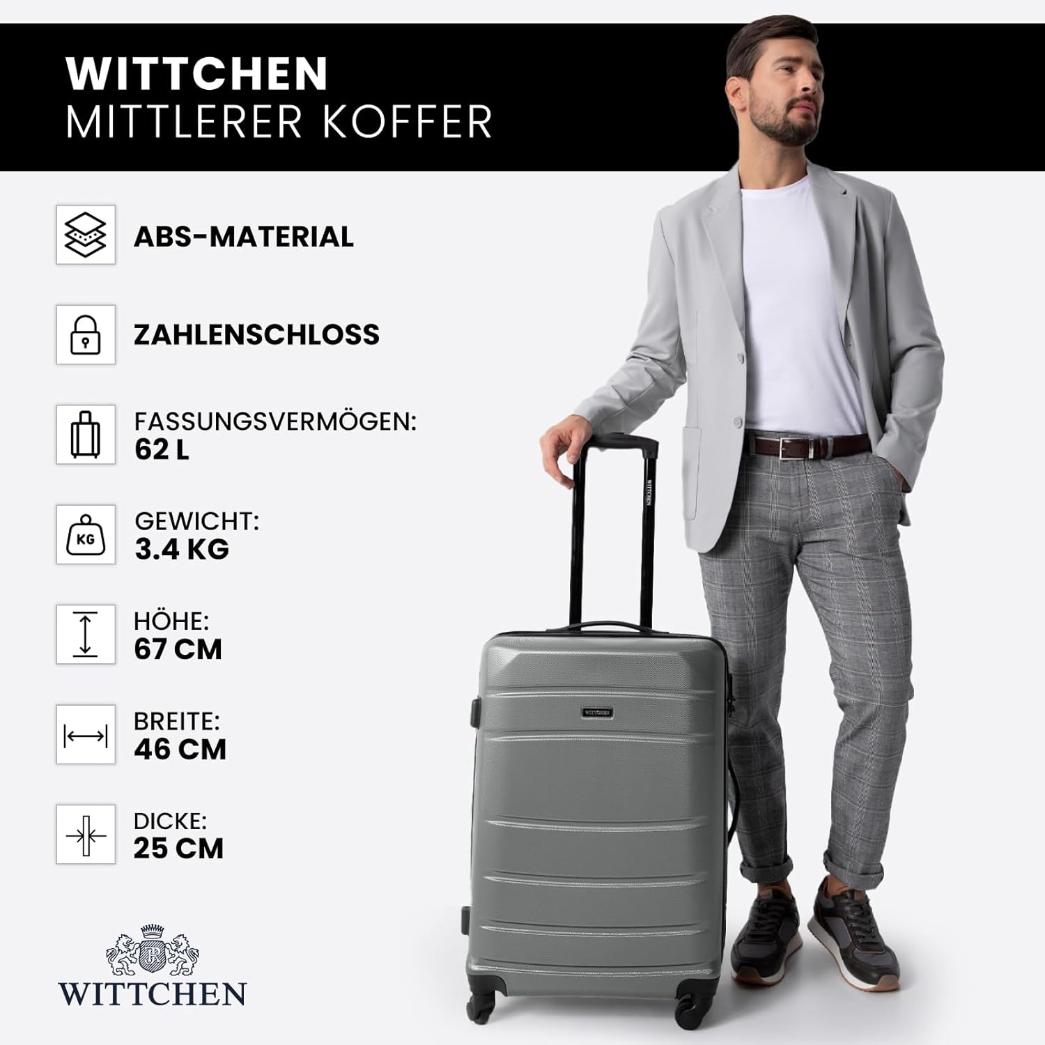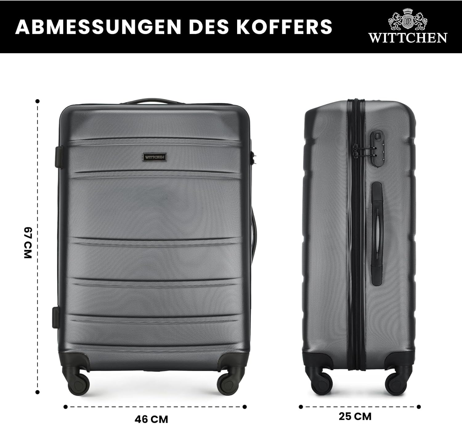 Wittchen Mittelgroßer Koffer: Wenn Sie einen Reisekoffer für Kurztrips oder als stilvolle Ergänzung Ihrer Sammlung suchen, ist dies der richtige Koffer für Sie. Er eignet sich perfekt für Wochenendausflüge und Geschäftsreisen. Entwickelt für Komfort und Sicherheit Ihrer Sachen