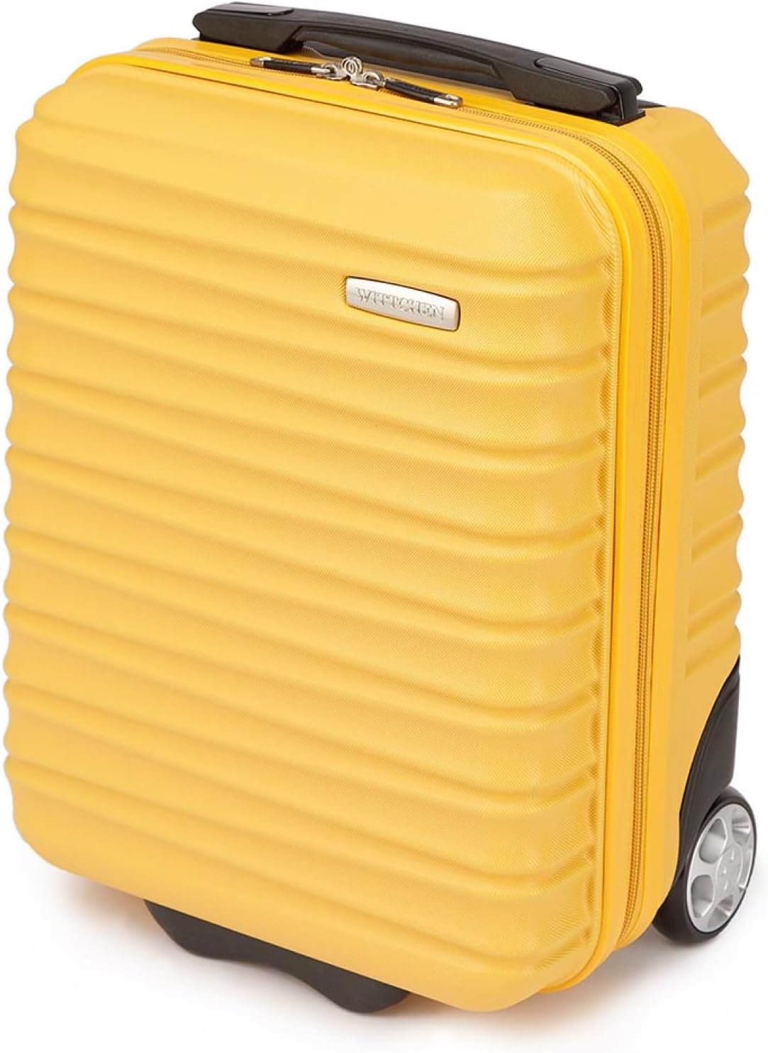 WITTCHEN Reisekoffer Kleinkoffer Kabinengepäck Handgepäck Rollkoffer Hartschale aus ABS2 Standard-Rollen Reißverschluss Groove Line Kleinkoffer XXS gelb Lufthansa/Eurowings/Ryanair/Condor