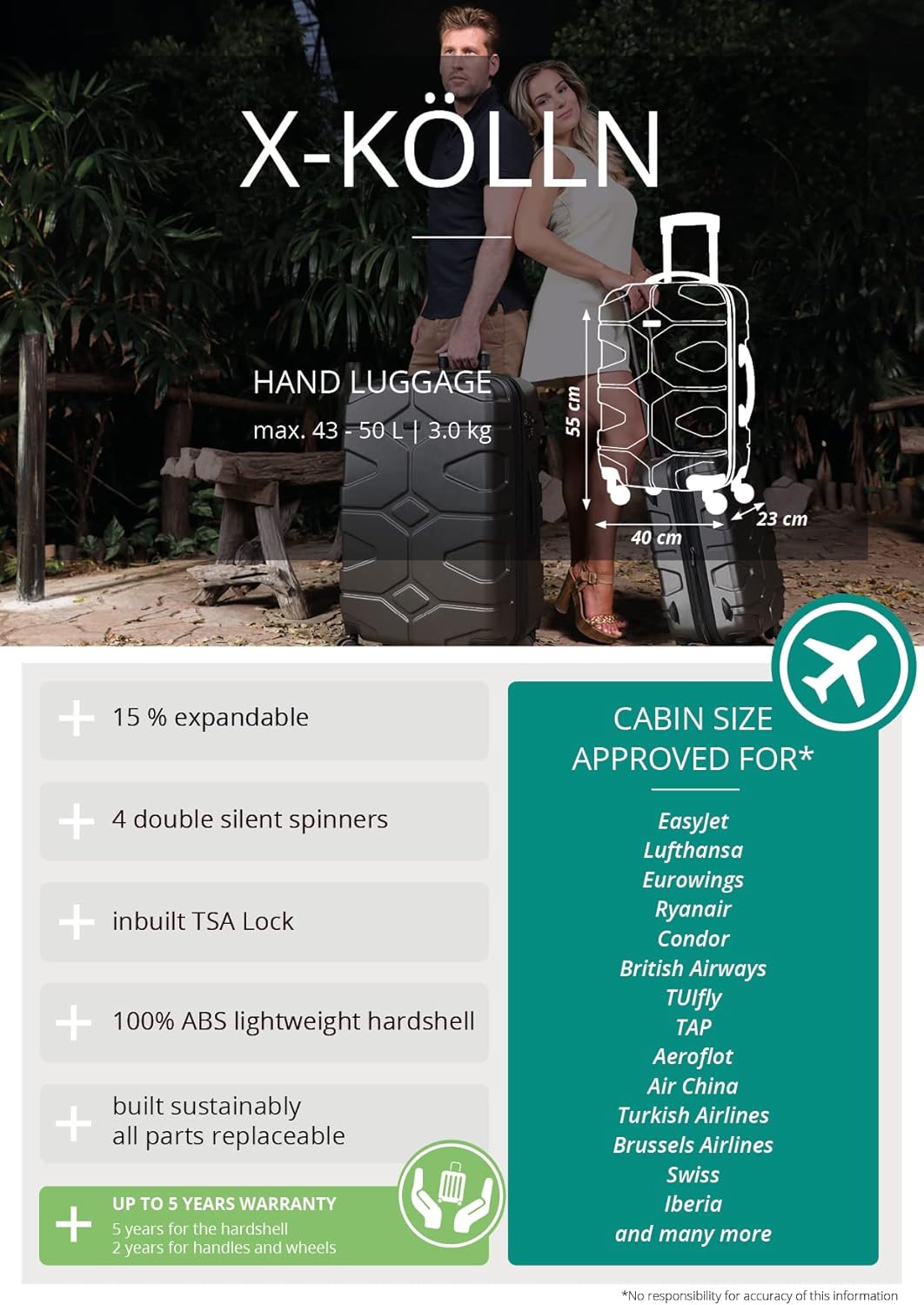 BORDGEPÄCK KOFFER: Das Bordcase (55 x 40 x 23 cm / HxBxT) eignet sich optimal für Flüge mit z.B. Easyjet, British Airways, Jet2. Mit seinen 3,0 kg sowie großzügigen 43/50 Litern bietet der Trolley genügend Packvolumen für Wochenendausflüge, Citytrips oder Geschäftsreisen.